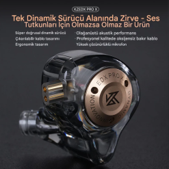 Olağanüstü ses detay çözünürlüğü ile KZ EDX Pro X, müzik dinlerken daha zengin ve daha otantik duygular yaşamanızı sağlar. Ses detay çözünürlüğündeki bu olağanüstü yetenek, gelişmiş ses işleme teknolojimiz ve hassas akustik tasarımımız sayesinde elde edilmiştir. Ürünün iç yapısını titizlikle optimize ederek, her notanın doğru bir şekilde yakalanmasını ve sunulmasını sağladık.
